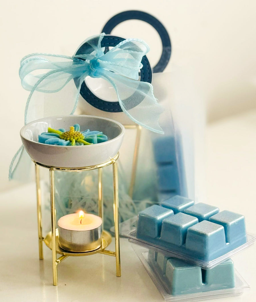 "The burner set is next-level gorgeous. The gold shimmer on the melts is such a luxurious touch. My home smells like a boutique spa."